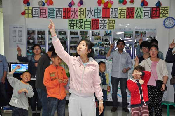 聽(tīng)完老師的介紹,青年們便紛紛來(lái)到14名兒童中間,與他們進(jìn)行了互動(dòng)交流。有的孩子情緒激動(dòng),喜與人交流,青年們便手拉手和他們做游戲,抱著他們說(shuō)話,教他們畫(huà)畫(huà);有些孩子較為自閉,青年們便坐在他們身邊,和這些孩子單獨(dú)交流。最后,在中心老師的組織下,青年與孩子們?cè)谝磺案卸鞯男摹敝刑鹆宋璧福诔錆M著“愛(ài)與奉獻(xiàn)”的氛圍中結(jié)束了此次活動(dòng)。
